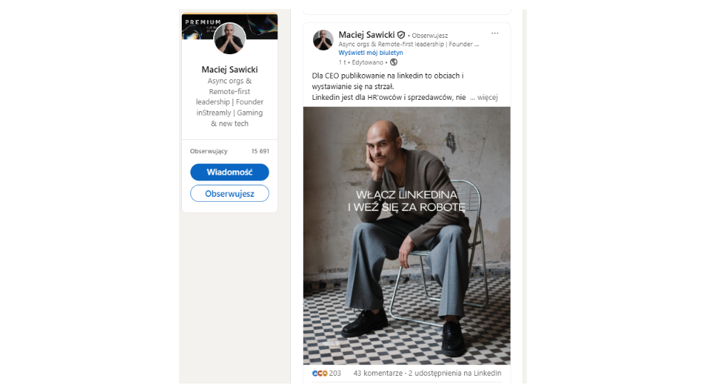 - w B2B: budowanie relacji na LinkedInie i poza nim, w contencie i w działaniach 1:1, oraz partnerską współpracę z klientem,