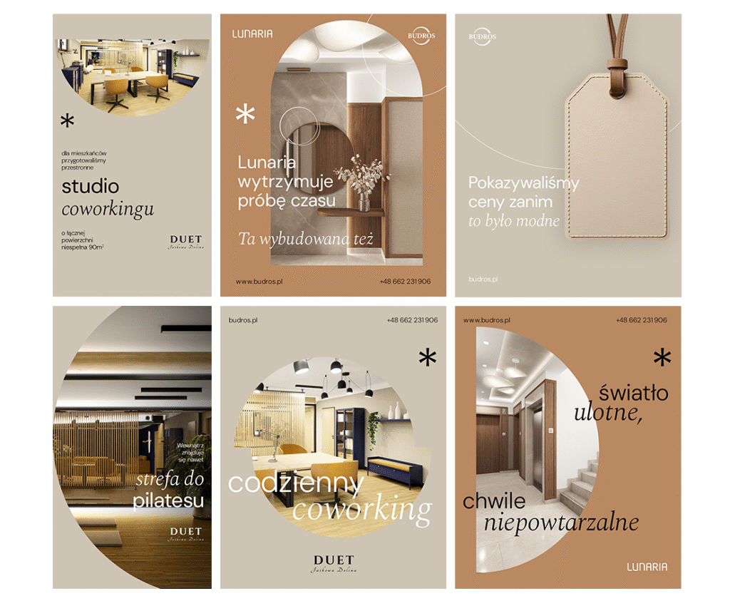 To może być cokolwiek – powtarzający się wzór, unikalny sposób nakładania na siebie kształtów, charakterystyczna linia czy gradient. To element, który „spina” wszystkie projekty w całość.