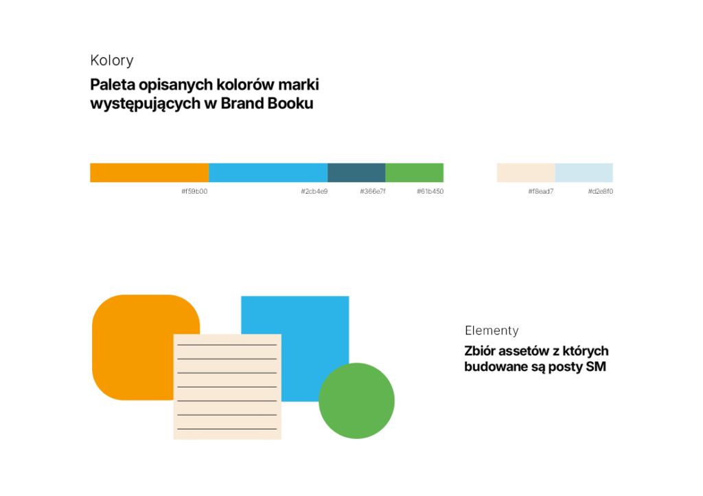 • Pełna paleta barw: Kolory główne, uzupełniające i akcentowe, wraz z informacją, jak ich używać.