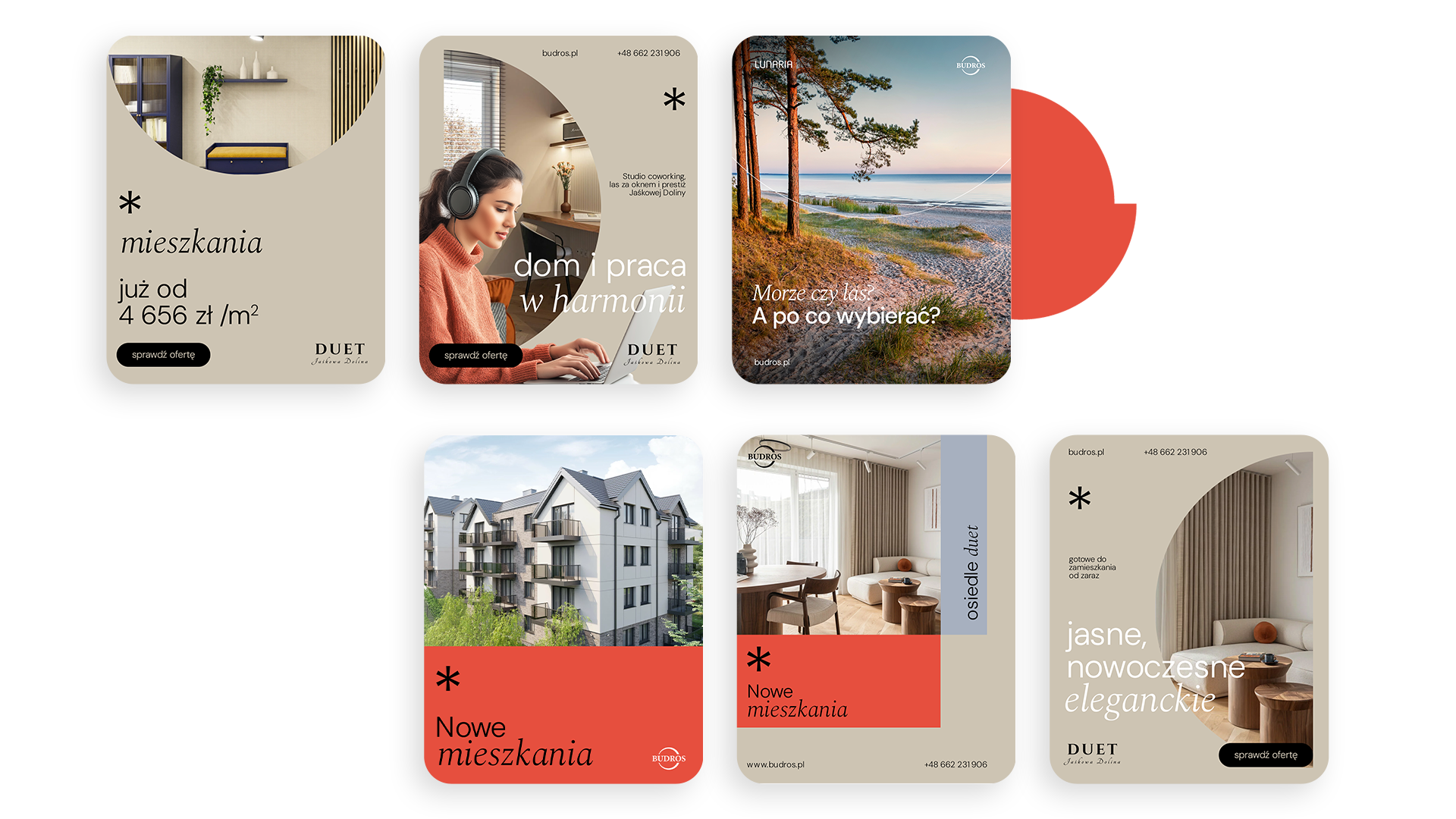 Wprowadziliśmy gry słowne i lekkie nawiązania do popkultury, które przełamują schematyczną komunikację branży deweloperskiej. Hasła budują emocje, przyciągają uwagę i nadają marce charakteru, jednocześnie pozostając spójne z elegancką, estetyczną oprawą wizualną. Dzięki temu komunikacja Budros zyskała świeżość i nowoczesność, zachowując przy tym klasę oraz wiarygodność wynikającą z wieloletniego doświadczenia marki.